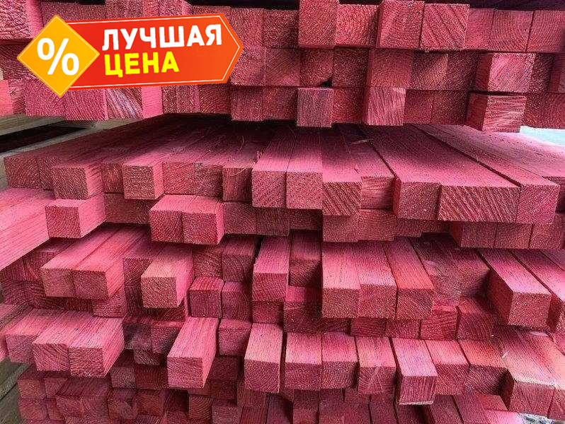Брусок пропитан специальным материалом. Он обеспечивает ее защиту от плесени и грибка, гниения, повреждения от вредителей. Также дает характерный и яркий красный оттенок.